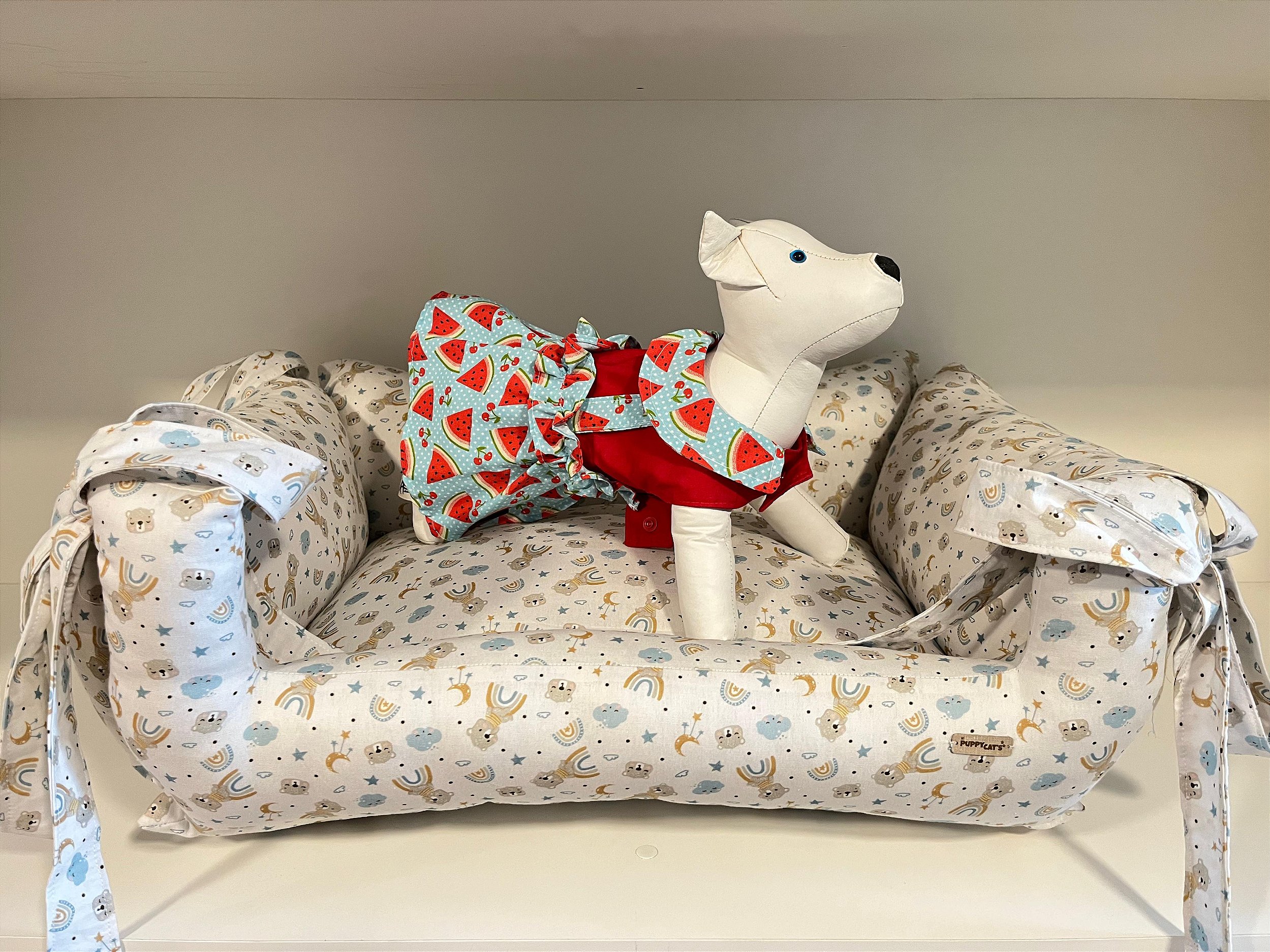 Suas laterais altas acolchoadas garantem bem-estar e proteção, enquanto o design exclusivo Puppy Cats deixa o cantinho do seu pet ainda mais charmoso.